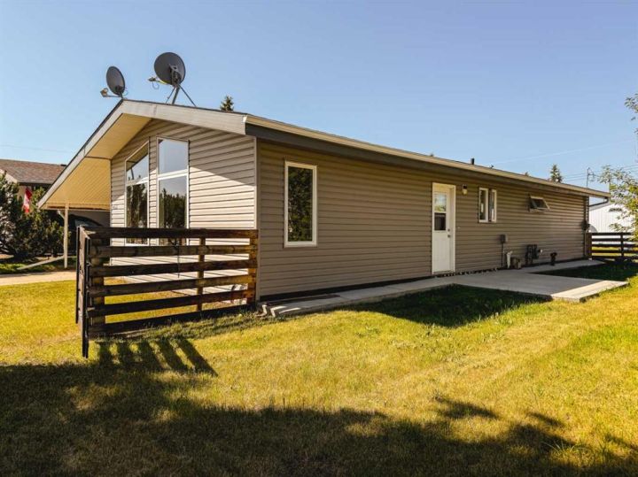Welcome to this bright and lovingly maintained 3-bedroom, 1-bathroom bungalow nestled in the peaceful community of Rycroft, AB—an ideal setting for families or retirees seeking comfort and convenience. This warm, open-concept home features vaulted ceilings, generous natural light, and thoughtful upgrades including newer vinyl siding, windows, eaves, and shingles (2016), plus R40 insulation for year-round efficiency. The primary bedroom has double closets, while the kitchen comes fully equipped with all appliances, including a newer dishwasher. A full unfinished basement offers ample storage. Laundry is currently downstairs, but could easily be moved up for single level living. Outdoors, enjoy a fenced yard, two sheds (10×20' and 7×8'), carport, a cement pad, and a cozy patio—perfect for gardening or relaxing. Located in the friendly Village of Rycroft, known as the “Hub of the Peace,” you'll have nearby access to amenities, Spirit River, and tranquil recreation spots like Dunvegan Park. A move-in-ready gem with small-town charm and room to live comfortably!
