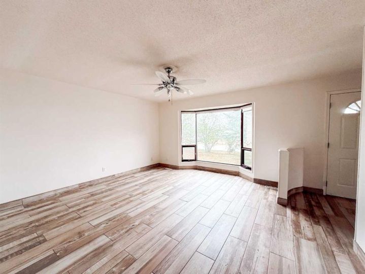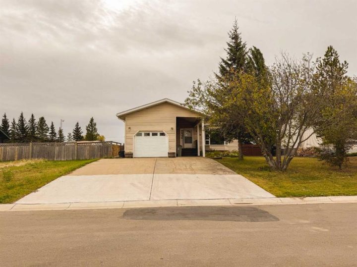 Welcome to this charming family home in the heart of Rycroft — where rural warmth meets community convenience. The home sits on a good-sized lot with mature trees and backs on to a park with playground. The property offers an ideal layout for multigenerational living or entertaining. The home boasts 3 bedrooms and a 4-piece bath upstairs, plus a lower level that features a fourth bedroom, a 3-piece bath w/tub, and a spacious entertainment room with a dry bar. Add to that abundant storage throughout, and you’ve got a home designed for everyday life. The upper level is bright and welcoming, with a bay window in the living room, dining area with garden-door access to a covered composite deck, and oak cabinet kitchen that comes with fridge, stove and dishwasher, serves as the hub of the home. Laundry room is conveniently located upstairs as well. Outside, the sun-drenched south-facing backyard includes a large sundeck that steps down toward the yard, where you’ll find raspberry bushes and a practical shed. Oversized parking pad and attached garage give you flexibility for vehicles or toys. Inside, key updates include new tile flooring in the main living areas, fresh paint, a newer high-efficiency furnace, and newer shingles. The home also features a chimney from a past fireplace that offers the opportunity for possible future revival, if desired. Rycroft delivers a peaceful, community-spirit lifestyle while keeping you connected. The village offers grocery, gas, local restaurants, convenience stores, and essential services. Outdoor recreation is right at your doorstep: enjoy nearby parks, the Rycroft Arena, Kin Park, and easy access to historic Dunvegan Provincial Park, just a short drive away. While rural, Rycroft is only 64km north of Grande Prairie, giving you access to full urban amenities within an hour’s drive. This home strikes a rare balance: the tranquility and space of rural living, paired with strong bones, smart improvements, and ready access to community and nature. Don’t miss your chance to make it yours! Call to view today!