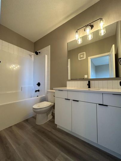 Clover Construction job # C141. Open plan bilevel with legal suite - 3 beds / 2 baths upper suite; 2 beds / 2 baths lower suite. 3 car attached garage - 2 stalls upper suite; 1 stall lower suite. Deck. Vinyl plank flooring throughout. Quartz countertops. Large pie shaped lot. Room for RV pad.