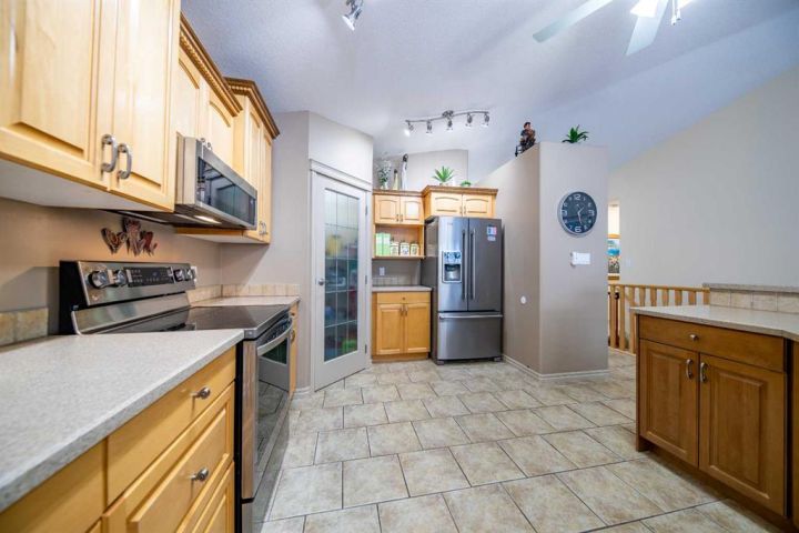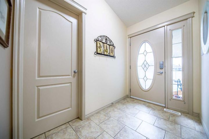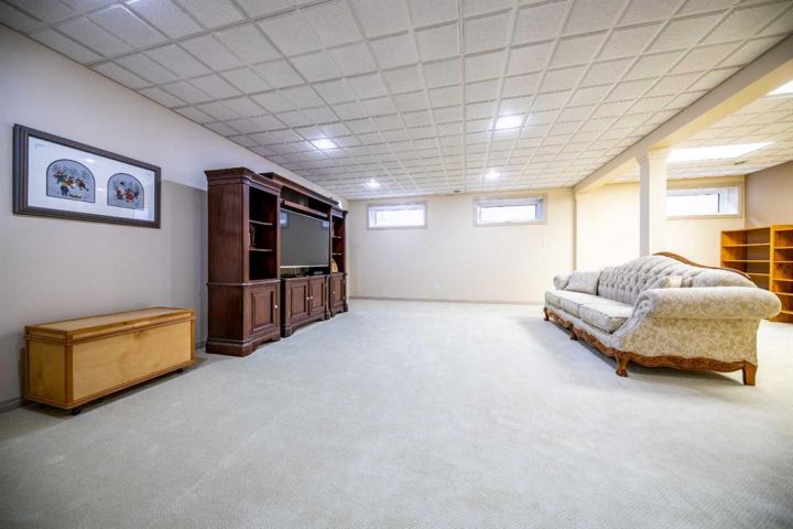 Discover refined living and modern peace of mind in this impeccably maintained home nestled in a sought-after adult-living complex (55+). From the moment you step inside, pride of ownership shines through every thoughtful upgrade and detail. Enjoy effortless entertaining in the bright, open-concept main living area—featuring updated stainless steel appliances, natural gas BBQ hookup on the composite deck, and a cozy gas fireplace with remote and fan for year-round comfort. The kitchen is as functional as it is stylish, boasting additional outlets, glass displays, wine rack & corner pantry. The master suite offers a peaceful retreat with a walk-in closet and a beautifully renovated ensuite, complete with a spacious walk-in shower. Two additional bedrooms on main floor, the versatile office provide plenty of flexibility. The fully finished basement invites relaxation with a rec room featuring a mounted TV, entertainment stand, and couch—all included. The professionally cleaned carpet looks and feels like new, and the luxurious jetted tub offers the perfect spot to unwind. The basement den offers a variety of options to build it into guest suite by adding french doors. Perfect space for live in caretaker, visitors or grandkid (18+). This home was designed for comfort and efficiency: triple-pane windows and R60 attic insulation, furnace & A/C only 9 years old (serviced annually), surge protection and independent heat/cooling operation, 50-gallon hot water tank (2025), reverse osmosis, water softener, and humidifier, 2 sump pumps, including a backup watchdog system. Quality continues outside with 50-year shingles (installed 2 years ago), a new garage door lift and springs, resealed driveway and walkways, and updated entry doors. Window blinds and blackout shades add comfort and privacy throughout. This welcoming community offers gate access to walking trails and a vibrant social club, plus professionally maintained landscaping, snow removal and irrigation services. Move-in ready, beautifully upgraded, and thoughtfully cared for—this home offers everything you need for a relaxed, low-maintenance lifestyle in a friendly, secure adult community.